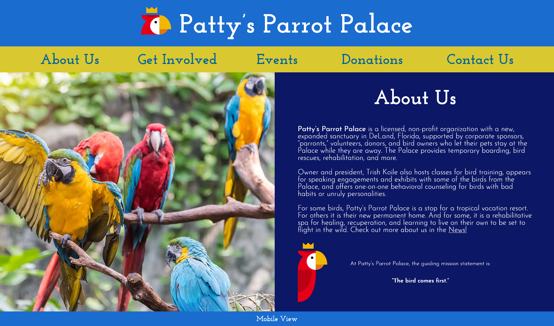 PATTY'S PARROT PALACE WEBSITE & MOBILE DESIGN